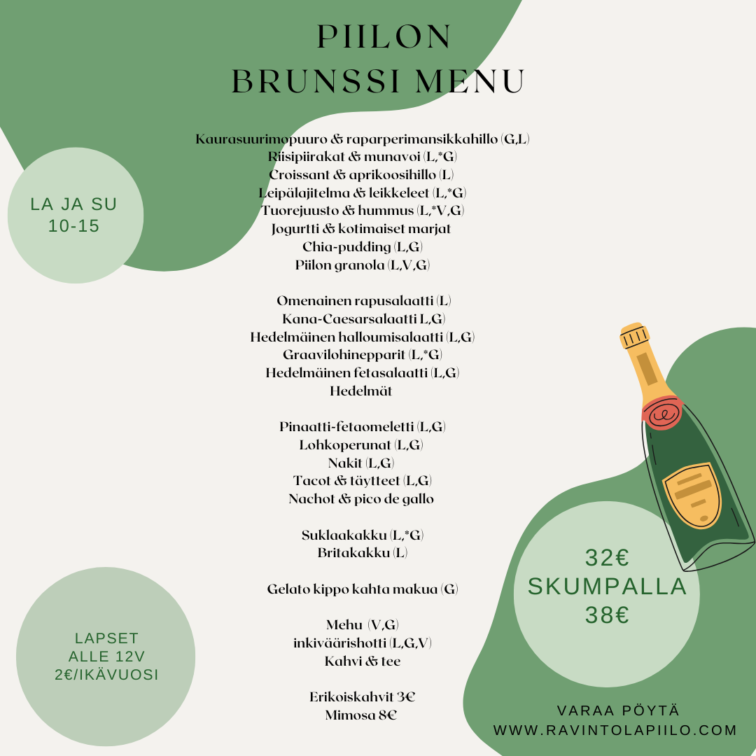 Viikonloppuisin oma ruokalista brunssin aikana 10-15
